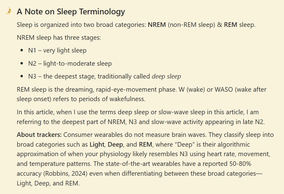 The challenge of course is we do not have a home device that can show the kind of multi-signal brain and vascular metrics used in research labs to signal “sleep quality.” Consumer sleep trackers that report “N2/N3 minutes” also give us, at best, an incomplete picture: they cannot tell us whether those minutes reached the depth that matters for glymphatic activity.