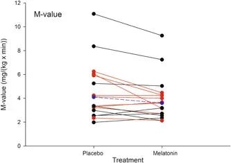 Insulin sensitivity dropped by 12% after melatonin treatment
